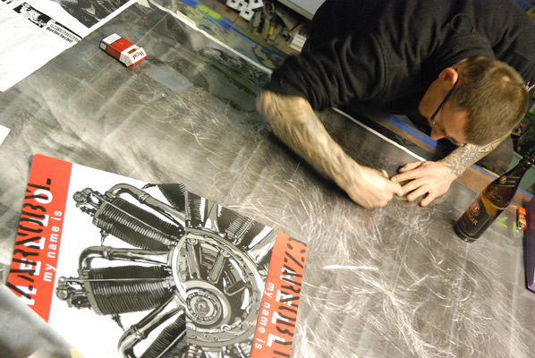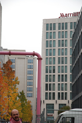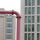 kreuzburger smarowany wałkiem z różową wielowarstwową polewą.